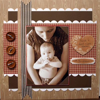 Here is another page I made during my scrappy weekend this past weekend. I used sketch #197 from The Creative Scrappers blog over on the left. This one also fits into the color challenge on the creating keepsakes site. The challenge was to use Red, White, and Brown. I would have never chose this color combination, but absolutely love the results!!!